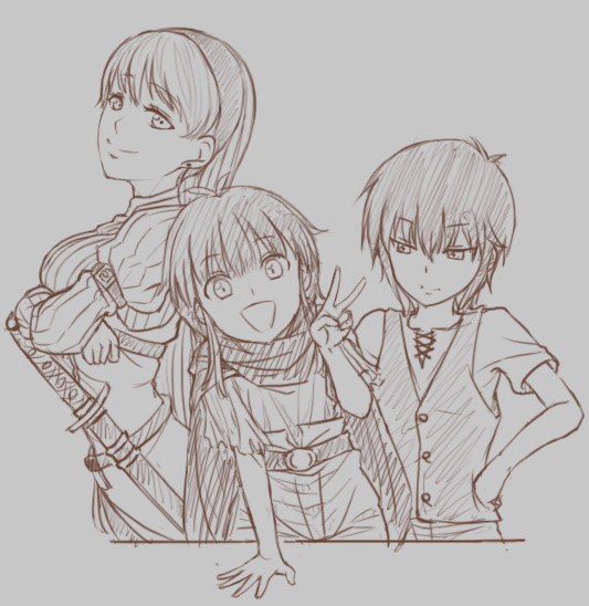 本当はあとリルビットのあの方(ミョルニル?さんだったかな違うかな)と戦士のあの人(悔しいことに名前ががががが……!!)も加えたかったんですが、リルビットの方のデザインは取り忘れ、戦士の方は元々デザインが無い方だったので無しで。むむむ。